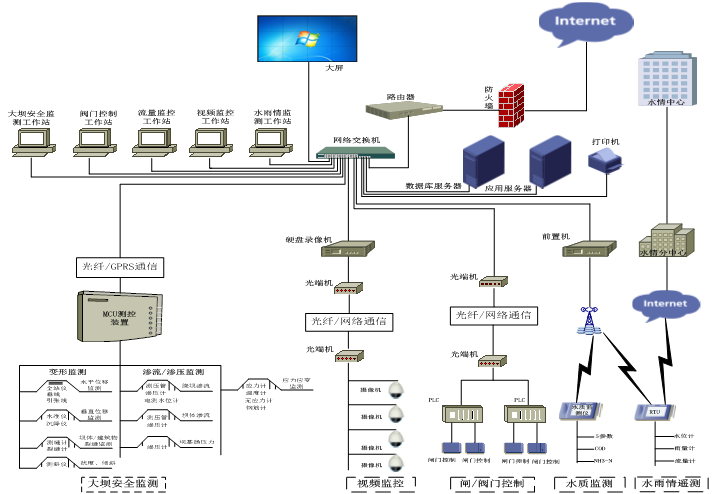 水庫信息化建設主要是利用網絡通信技術、物聯網技術、GIS地理信息技術、自動化控制技術、計算機技術、軟件系統技術等,實現對水庫建筑物變形、滲流、滲漏、水位、雨量、流量、視頻、閘/閥門啟閉等數據自動實時采集或控制,并對數據進行統計分析,為防洪調度、防災應急指揮提供數據依據。